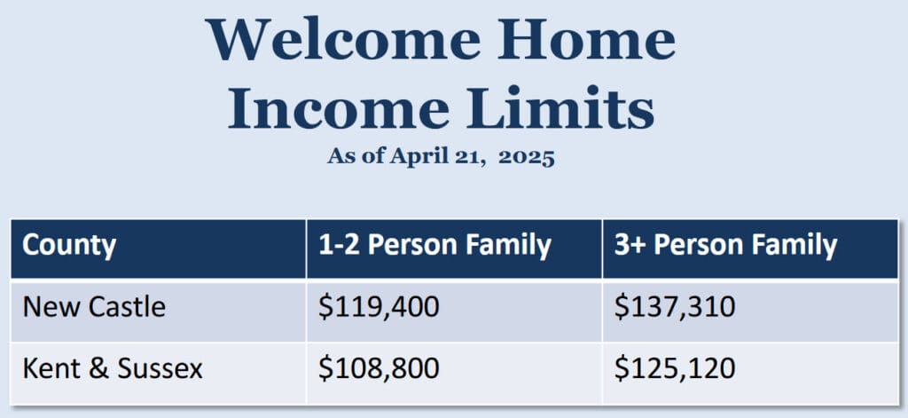 Below are the household income limits by County for DSHA Welcome Home Program: